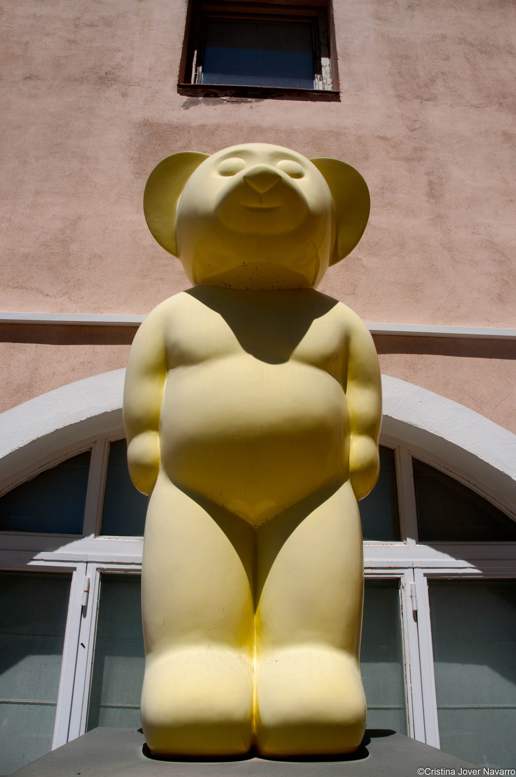Oso gigante de poliéster que adorna uno de los miradores de la galería